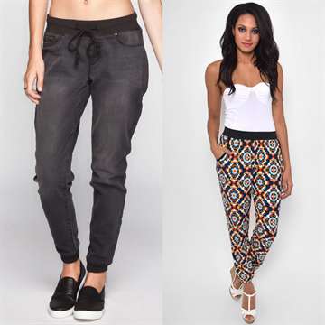 Несмотря на «молодой возраст», джоггеры уже успели обзавестись классическими и более аутентичными аналогами. Чаще всего встречаются варианты с незначительно заниженной талией. Однако тенденции вполне допускают завышение линии пояса, что особенно подходит представительницам прекрасного пола с высоким ростом. Нередко они выпускаются с запахом или «защипами», что гармонично украшает зону бедер.