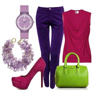 К туфлям и босоножкам яркого розового цвета подбирается одежда простого кроя и спокойного тёмного цвета, а украшений — минимум. На фоне светлой одежды яркие туфли могут выглядеть вычурно и безвкусно. Для непринуждённого стиля можно выбрать тёмные джинсы или брюки-дудочки, прямую юбку. Для строгого — платье, подчёркивающее фигуру и жакет.
