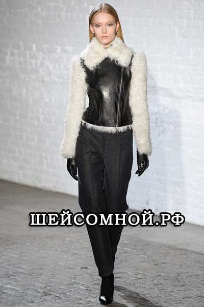 — на этой же модели кожу соединили с натуральным, немного кучерявым мехом (овчиной). Стильное, игривое и вместе с тем строгое решение